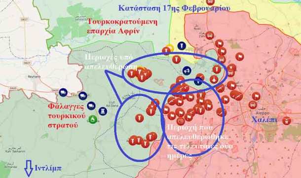 Πάντως, αν ολοκληρωθεί η προέλαση του συριακού στρατού από το Χαλέπι προς δυσμάς, μέχρι τα σύνορα με την Τουρκία, κλείνει ο διάδρομος επικοινωνίας Ιντλίμπ-Αφρίν.