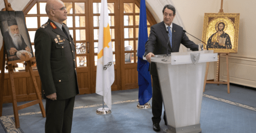 Πραγματοποιήθηκε σήμερα η τελετή διαβεβαίωσης του νέου Α/ΓΕΕΦ Αντιστράτηγου Δημοκρίτου Ζερβάκη στο Προεδρικό Μέγαρο στην Λευκωσία, παρόντος του Προέδρου της Κυπριακής Δημοκρατίας Νίκου Αναστασιάδη.