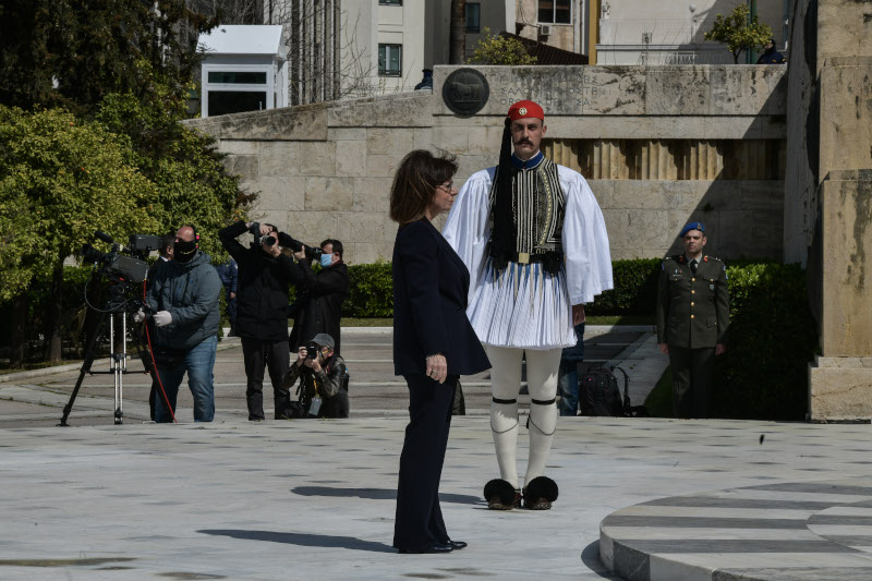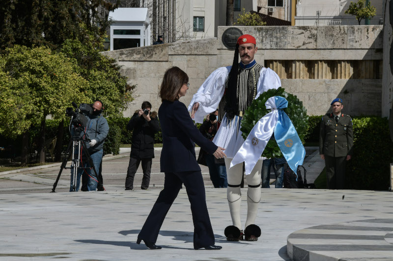 Σε μία άδεια Αθήνα, χωρίς στρατιωτική παρέλαση, αλλά με κατάθεση στεφάνου από την Πρόεδρο της Δημοκρατίας στο Μνημείου του Άγνωστου Στρατιώτη τιμήθηκε η επέτειος της 25ης Μαρτίου, λόγω του κορωνοϊού.