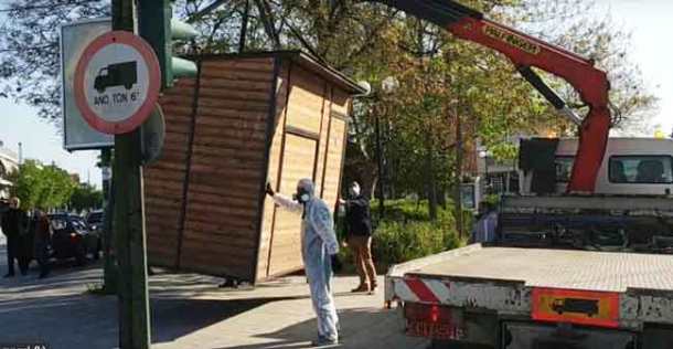Σύμφωνα με το onlarissa, το πρωί του Σαββάτου ειδικά συνεργεία τοποθέτησαν τους έξι οικίσκους στα ισάριθμα σημεία τροφοδοσίας των αποκλεισμένων από τα έκτακτα μέτρα ασφαλείας.