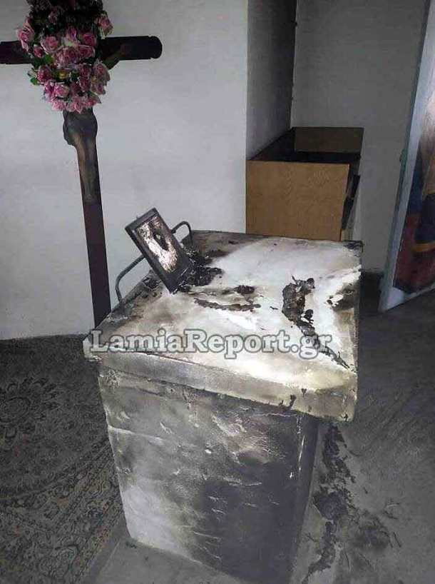 Σοκ και θλίψη στη Λαμία. Ιερόσυλοι διέρρηξαν και έβαλαν φωτιά στο εκκλησάκι του Αγίου Αθανασίου που βρίσκεται μέσα στο Κοιμητήριο του Σταυρού Λαμίας, προκαλώντας τεράστιες ζημιές.