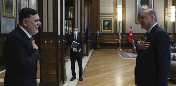 Ο Σάρατζ περνώντας το κατώφλι του Παλατιού του Τούρκου προέδρου, «υπέβαλλε τα σέβη του», καθώς με τη βοήθειά του ανέτρεψε την κατάσταση στη Λιβύη πετυχαίνοντας μια σειρά από νίκες εναντίον του στρατάρχη Χαφτάρ.