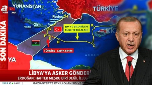 Δείχνοντας χάρτες και πίνακες με τις επτά περιοχές κοντά στην Κρήτη, ο Τούρκος πρόεδρος είπε: «Σε αυτό τον πίνακα φαίνεται η περιοχή με τις ζώνες θαλάσσιας δικαιοδοσίας της Τουρκίας και της Λιβύης. Όποιος είναι έξυπνος γνωρίζει ότι η Τουρκία εδώ δεν πρόκειται να κάνει την παραμικρή υποχώρηση. Στο παρελθόν δεν είχαμε ούτε ερευνητικά πλοία ούτε γεωτρύπανα. Τώρα έχουμε τρία πλωτά γεωτρύπανα και δύο ερευνητικά πλοία και όλα βρίσκονται και συνεχίζουν να δουλεύουν στην περιοχή εδώ. Όλα αυτά τους έχουν ανησυχήσει πολύ (τους Έλληνες). Όταν έρθουν εδώ τα γεωτρύπανά μας, δεν θα έρθουν φυσικά για να κουνήσουν το μαντίλι. Θα τα συνοδεύουν φρεγάτες. Έρχονται εδώ προετοιμασμένα για το οτιδήποτε. Κοιτάξτε, εδώ έτσι και γίνει το παραμικρό λάθος, θα απαντήσουμε όπως πρέπει».