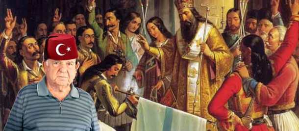 Η Ελλάδα δεν έπρεπε να κάνει ποτέ την Επανάσταση, δεν έπρεπε ποτέ να γίνει το 1821 όπως είπε χαρακτηριστικά, (άρα άδικα έχυσαν το αίμα τους και έδωσαν τη ζωή τους οι Ήρωες της Επανάστασης) και κακώς έφυγε από την «σκέπη» των Οθωμανών γιατί έκανε ένα αποτυχημένο κράτος, ένα κρατίδιο.