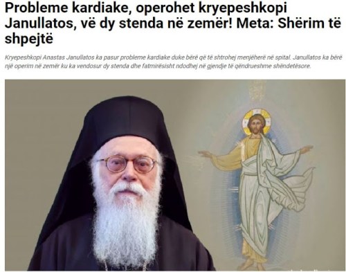 Τα νέα ανακοινώθηκαν από την Ορθόδοξη Εκκλησία της Αλβανίας, όπου ανακοινώθηκε ότι ο 90χρονος Αρχιεπίσκοπος Αναστάς Γιαννουλάτος διαγνώστηκε με στένωση της καρδιακής αρτηρίας και μέσα σε μία ημέρα υπεβλήθη σε αγγειοπλαστική που πραγματοποιήθηκε με επιτυχία με την τοποθέτηση δύο στεντ.
