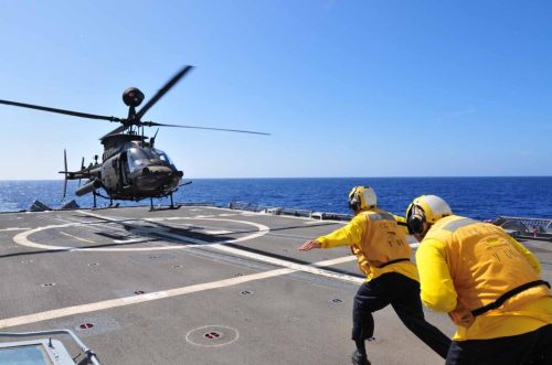 Προσνήωση OH-58D Kiowa Warrior στο καταδρομικό USS Lake Erie (CG 70) κλάσης Ticonderoga.