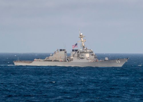 PACIFIC OCEAN (Jan. 15, 2021) The Arleigh Burke-class guided-missile destroyer USS John Finn (DDG 113), part of the Theodore Roosevelt Carrier Strike Group, transits the Pacific Ocean, Jan. 15, 2021. The Theodore Roosevelt Carrier Strike Group is on a scheduled deployment to the U.S. 7th Fleet area of operations. As the U.S. Navy’s largest forward-deployed fleet, with its approximate 50-70 ships and submarines, 140 aircraft, and 20,000 Sailors in the area of operations at any given time, U.S. 7th Fleet conducts forward-deployed naval operations in support of U.S. national interests throughout a free and open Indo-Pacific area of operations to foster maritime security, promote stability, and prevent conflict alongside 35 other maritime nations and partners. (U.S. Navy photo by Mass Communication Specialist 2nd Class Casey Scoular)