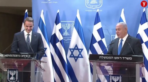 Oπρωθυπουργός Μπέντζαμιν Νετανιάχου προέβη σε κοινές δηλώσεις με τον συνάδελφό του, τον πρωθυπουργό της Ελλάδας, Κυριάκο Μητσοτάκη, ο οποίος βρίσκεται στο Ισραήλ για μια γρήγορη επίσκεψη.