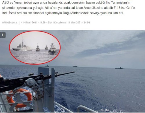 στην Κρήτη. Ο ισραηλινός στρατός, από την άλλη πλευρά, κήρυξε το πολεμικό παιχνίδι στην ανατολική Μεσόγειο με σκανδαλώδεις δηλώσεις, γράφει η τουρκική εφημερίδα Μιλιέτ.